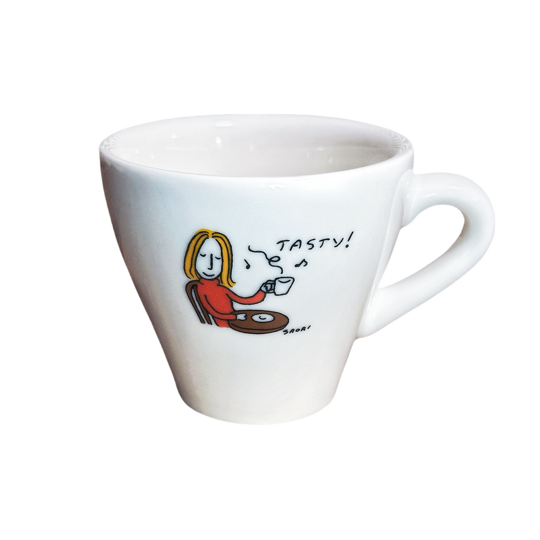 This compact one-shot cup, designed by Saori Otsuka, is crafted for a rich coffee experience. Simply add one teaspoon (approximately 1g) of coffee power and pour hot water up to 80% capacity (around 70ml) to enjoy the deep aroma and full-bodied taste of freshly brewed coffee.